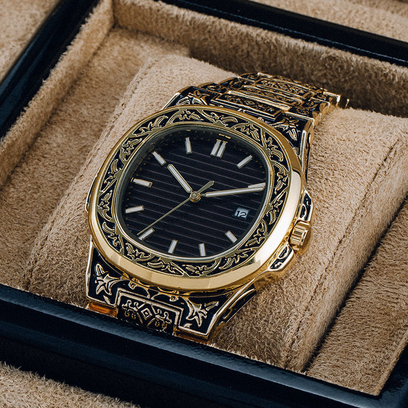 Men's Pattern Steel Belt Calendar Quartz Watch