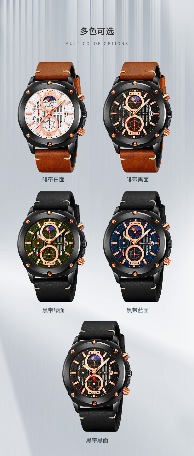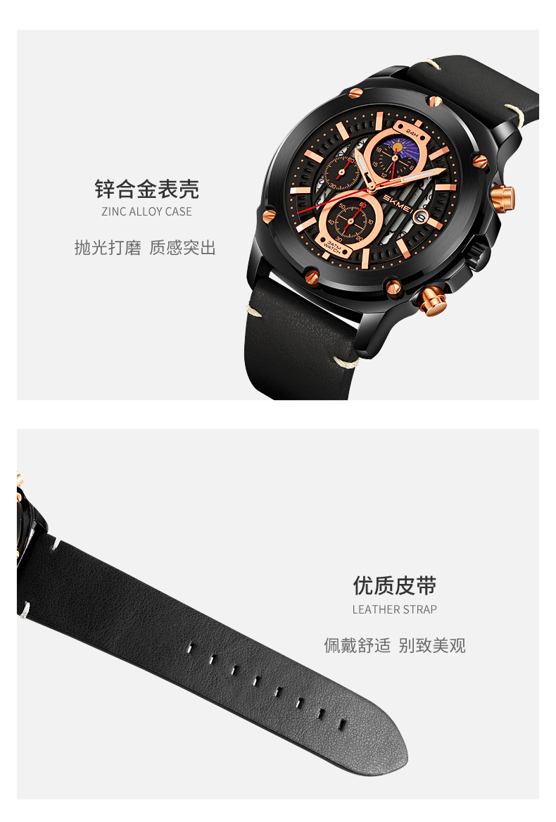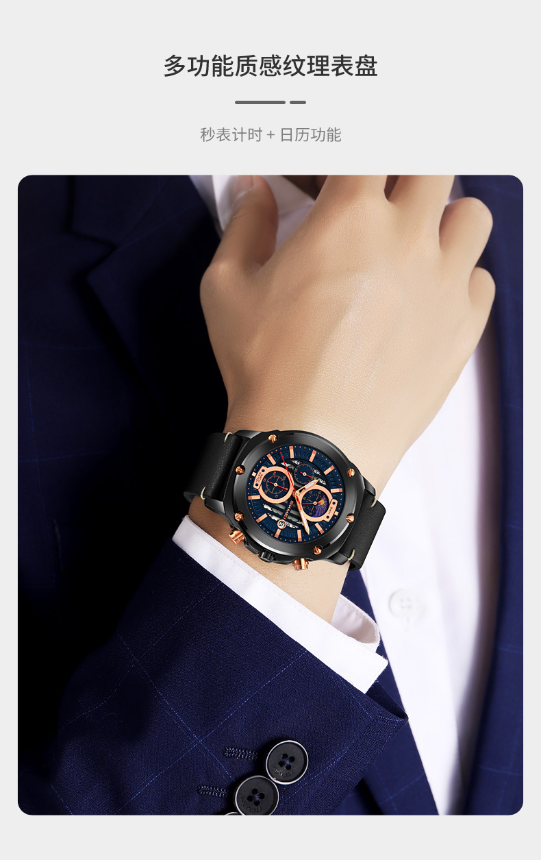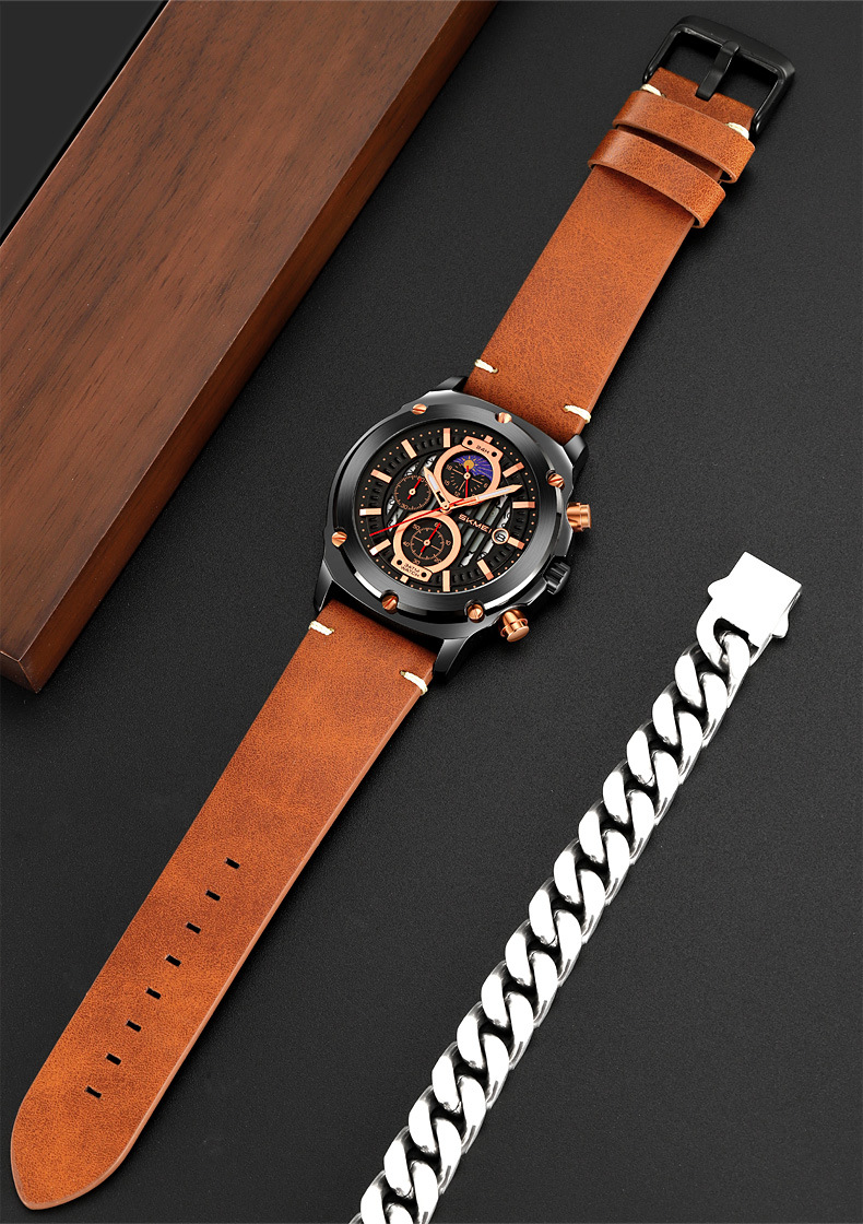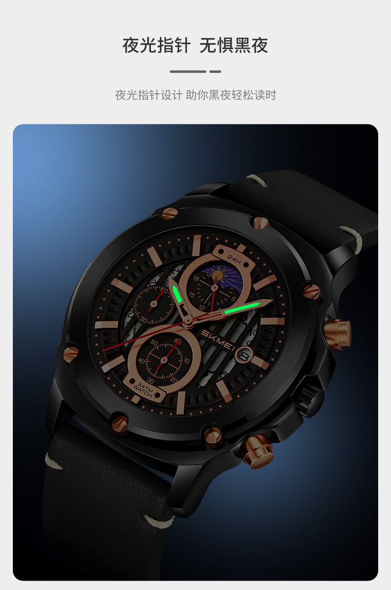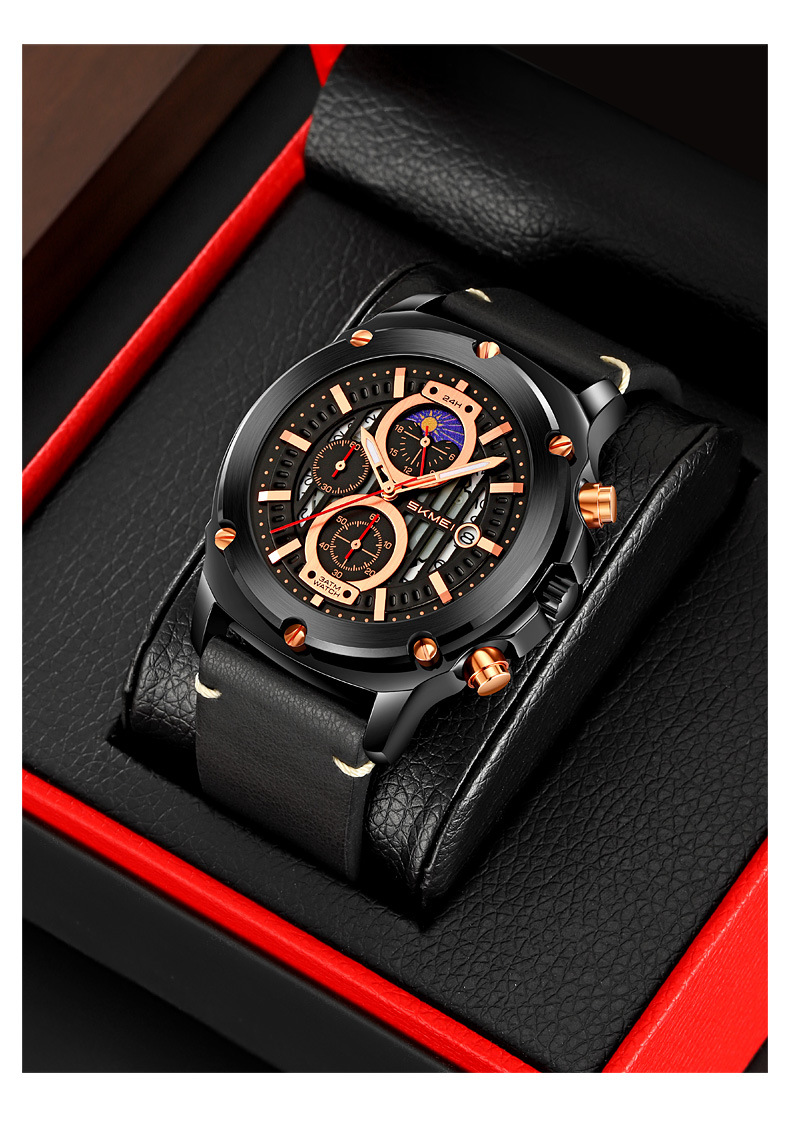 Men's Watch Fashion Trend Men's Leather-belt Watch Three Eyes And Six Needles Quartz Watch
