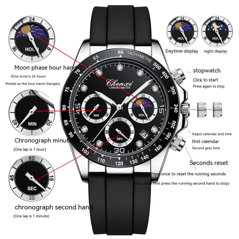 Multi-functional Silicone Band Watch Men’s Three Eyes And Six Needles